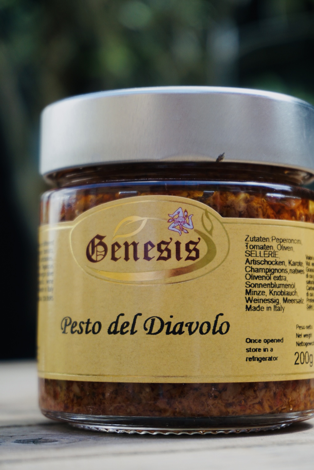 Onze Pesto del Diavolo is een pittige variatie op de klassieke pesto – vol smaak, kruidig en met een vleugje Italiaanse vuur. Gemaakt met de beste ingrediënten uit Italië, brengt deze pesto warmte en diepte in elk gerecht. Perfect om je pasta, bruschetta of pizza nét dat beetje extra karakter te geven. Ook heerlijk als dip bij een borrelplank of om vlees en groenten mee op smaak te brengen.